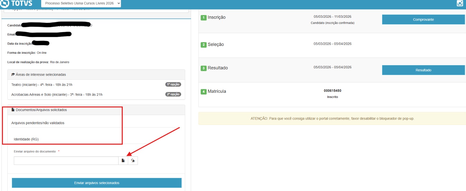 Importante: a matrícula somente será concluída após o preenchimento completo das informações solicitadas e o envio da documentação obrigatória.